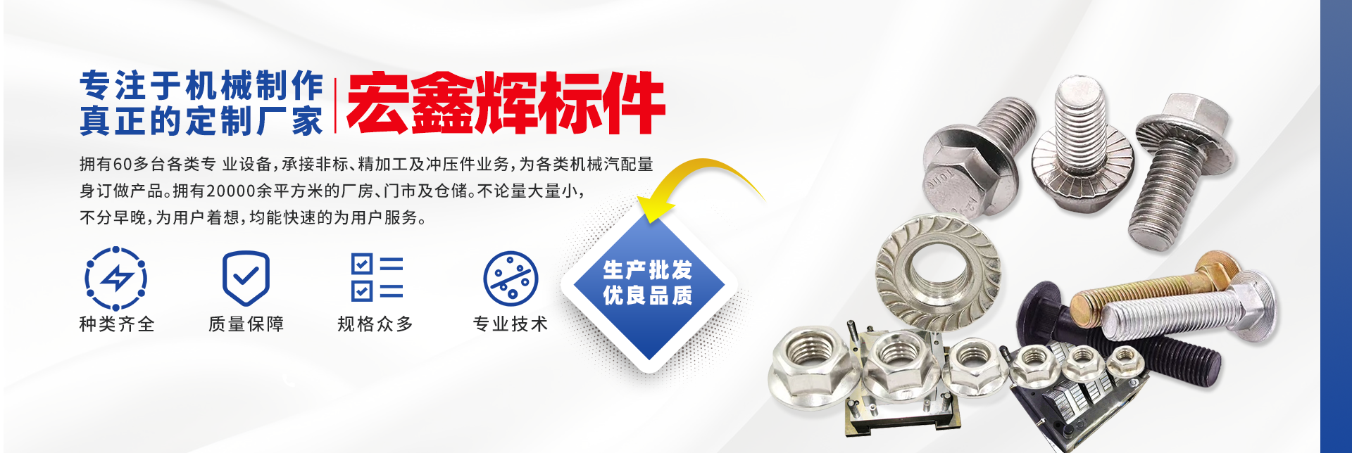 四川宏鑫輝標(biāo)準(zhǔn)件制造有限公司下設(shè):南充市宏輝機(jī)械制造有限公司,南充市聚宏機(jī)電設(shè)備有限公司,公司始建于1994年。為了拓展市場(chǎng),降低成本,本公司于2007年、2020年分別在南充、 成都、重慶創(chuàng)建了生產(chǎn)基地。擁有60多臺(tái)各類專 業(yè)設(shè)備,承接非標(biāo)、精加工及沖壓件業(yè)務(wù),為各 類機(jī)械汽配量身訂做產(chǎn)品。擁有20000余平方米的廠房、門市及倉儲(chǔ)。公司以誠(chéng)信為本,竭誠(chéng)為廣大客戶提供服務(wù)。不論量大量小,不分早晚,為用戶著想,均能快速的為用戶服務(wù)。 公司所生產(chǎn)及代理的產(chǎn)品為業(yè)界人士公認(rèn)的國(guó)內(nèi)、國(guó)際優(yōu)等品牌。在產(chǎn)品性能與質(zhì)量
